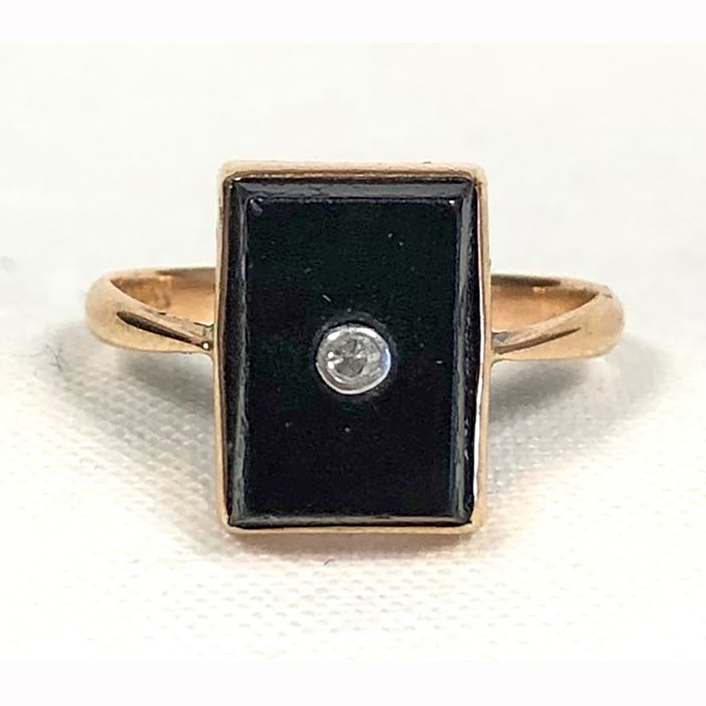 LADIES DECO GOLD RING BLACK STONE WITH CENTRE PASTE STONE