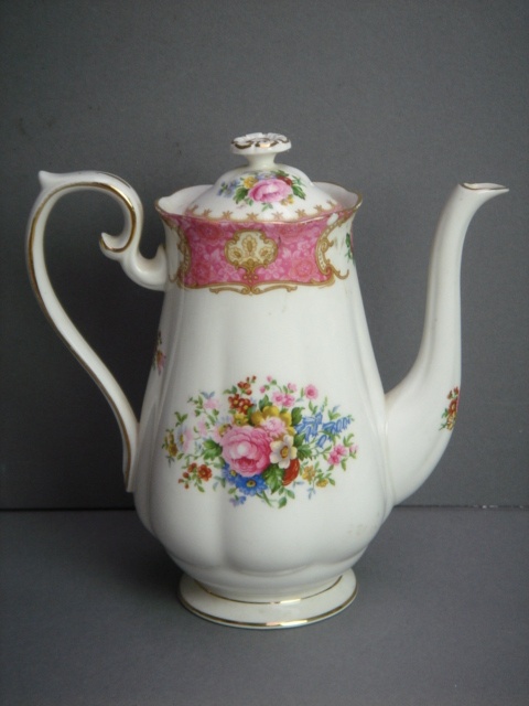 LADY CARLYLE ROYAL ALBERT COFFEE POT AND LID SMALL PINK FLORAL PAT. (X2)