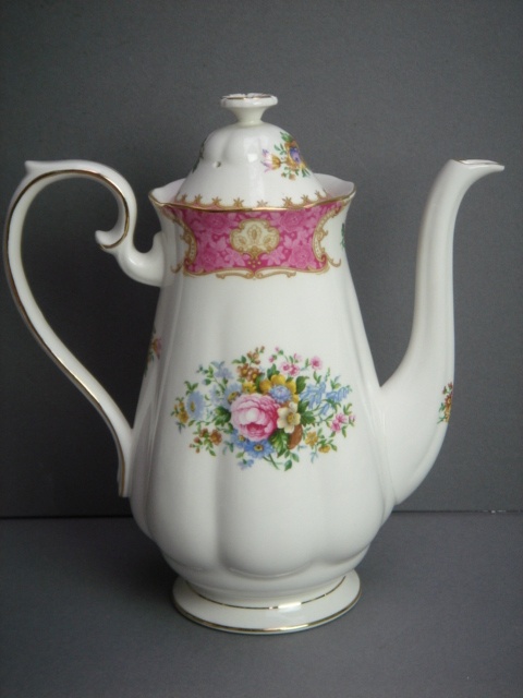 LADY CARLYLE ROYAL ALBERT LARGE COFFEE POT AND LID PINK FLORAL PAT. (X2)