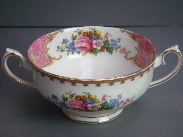 LADY CARLYLE ROYAL ALBERT SOUP CUP AND SAUCER PINK FLORAL (X28)