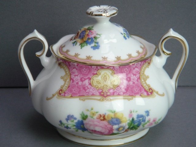 LADY CARLYLE SUGAR BOX AND LID WITH TWIN HANDLES PINK FLORAL PAT. (X3)