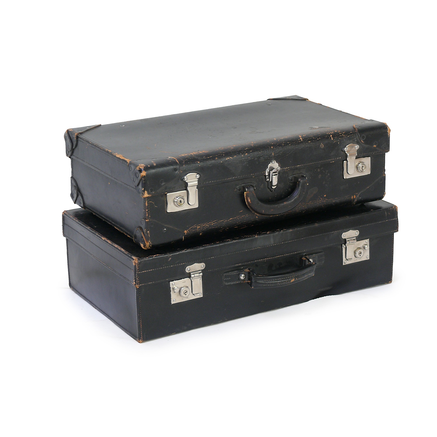 LARGE BLACK LEATHER SUITCASE EDWARDIAN 66 CM LONG