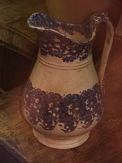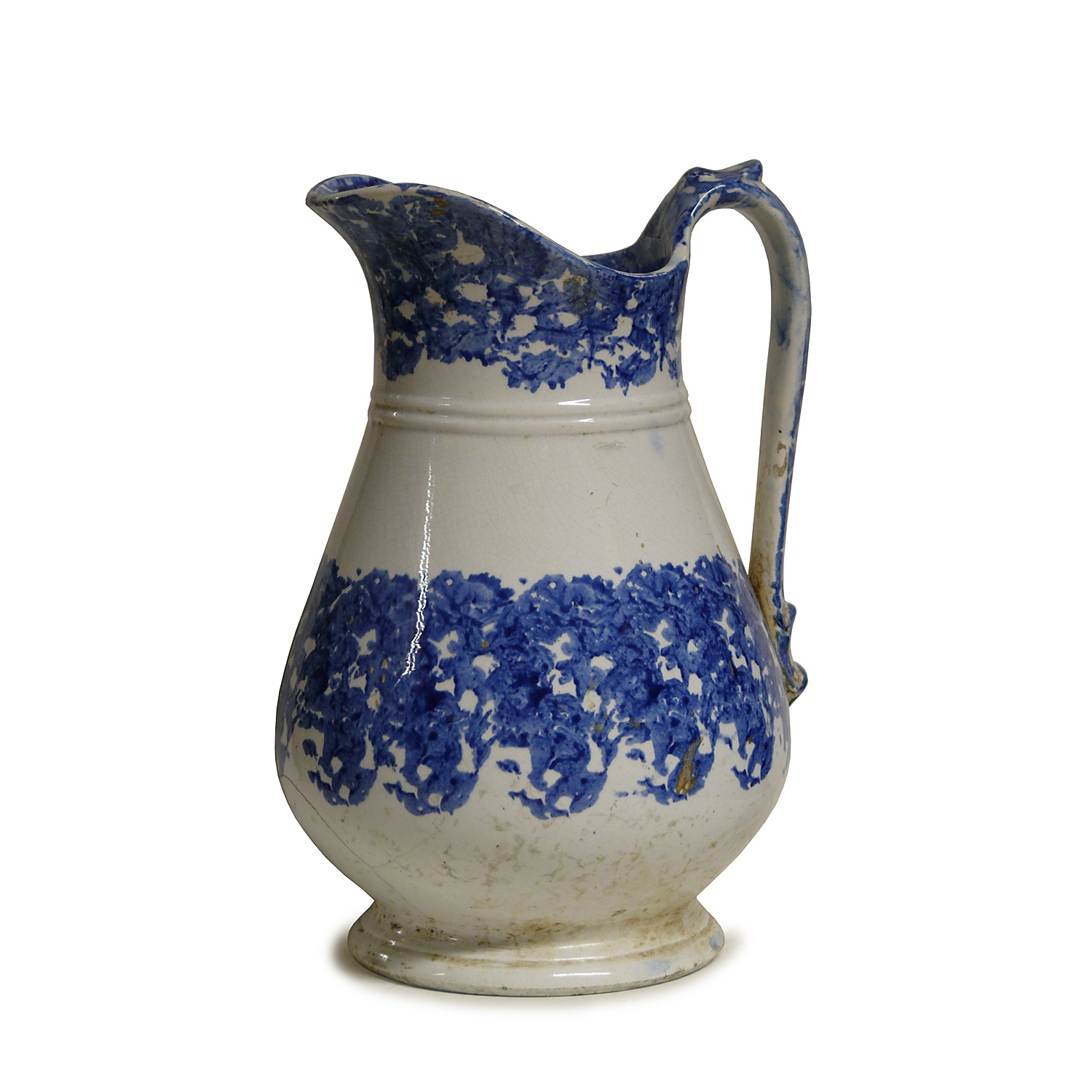 LARGE BLUE AND WHITE SPONGEWARE JUG