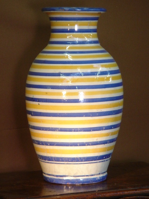 LARGE BLUE YELLOW WHITE STRIPE VASE CHINA 19/i HIGH