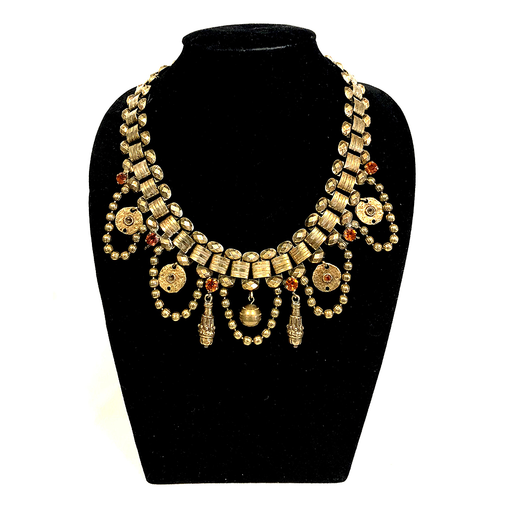 LARGE BOOK CHAIN GILT NECKLACE TUDOR REVIVAL STYLE WITH SWAGS AND DROPS