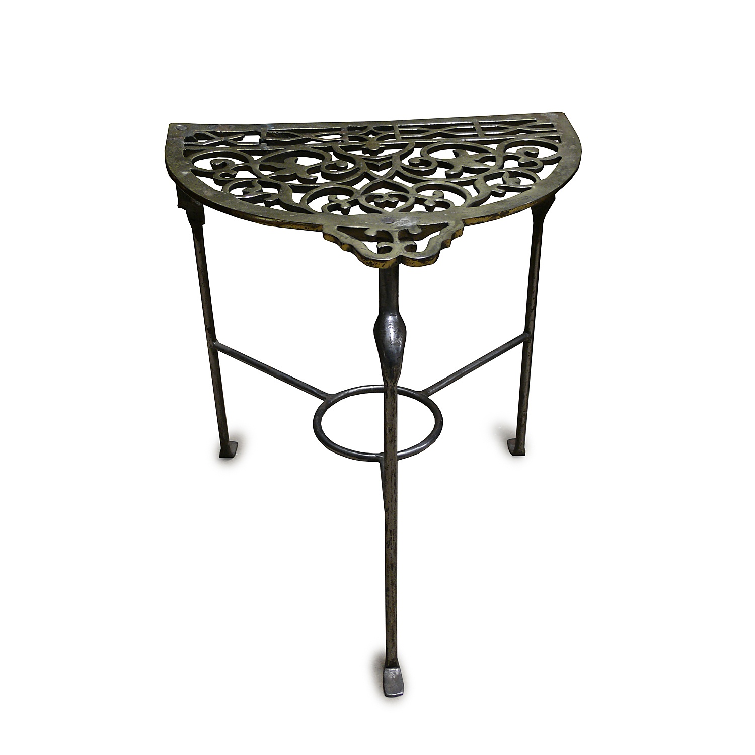 LARGE BRASS AND WROUGHT IRON KETTLE STAND