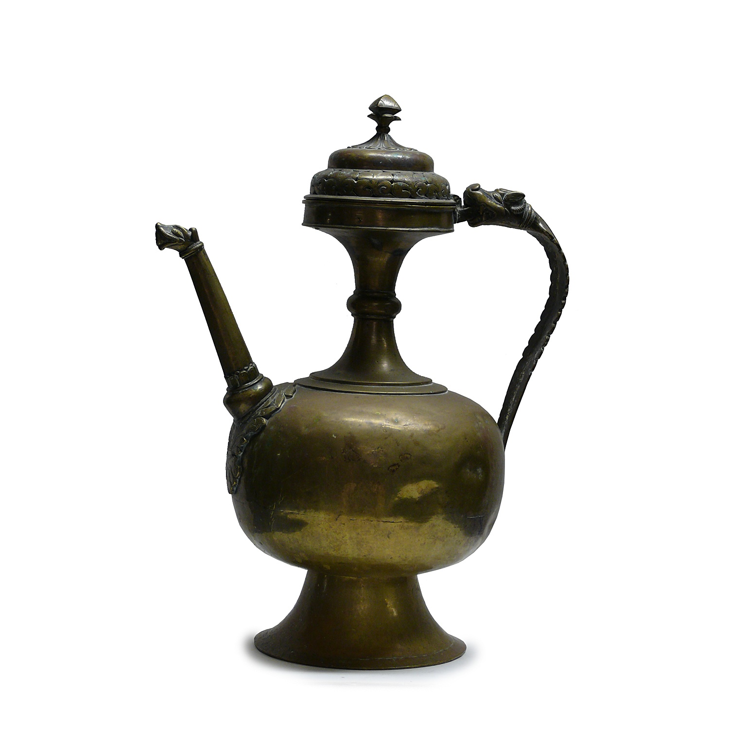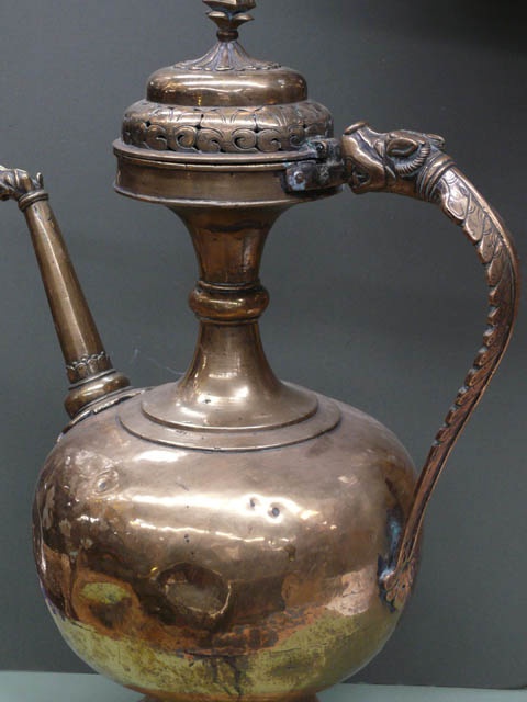 LARGE BRASS SULTANATE WATER EWER / JUG AND COVER WITH TALL NECK COBRA HANDLE INDIAN 16TH CENT STYLE