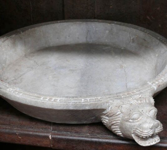 LARGE CARVED WHITE MARBLE LION HEAD BOWL