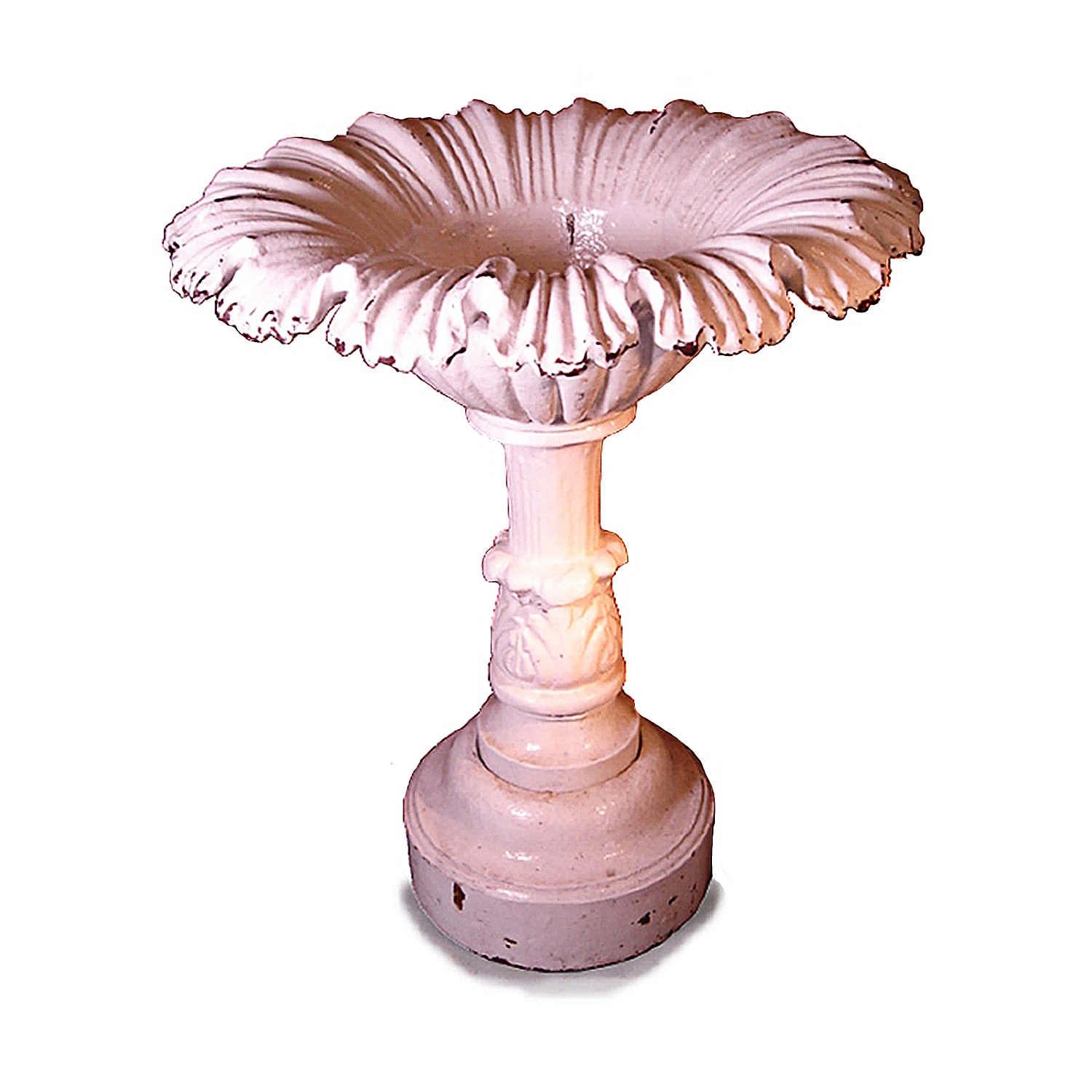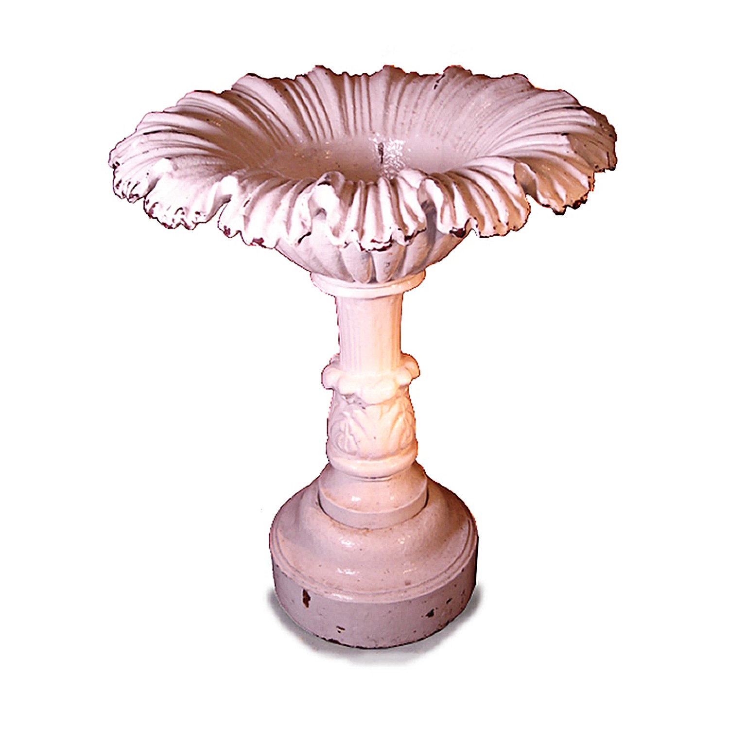 LARGE CAST IRON ACANTHUS LEAF GARDEN URN / BIRD BATH 2'10/i HIGH (X2)