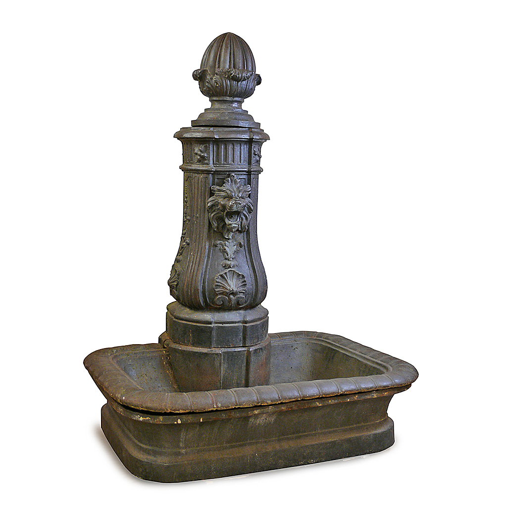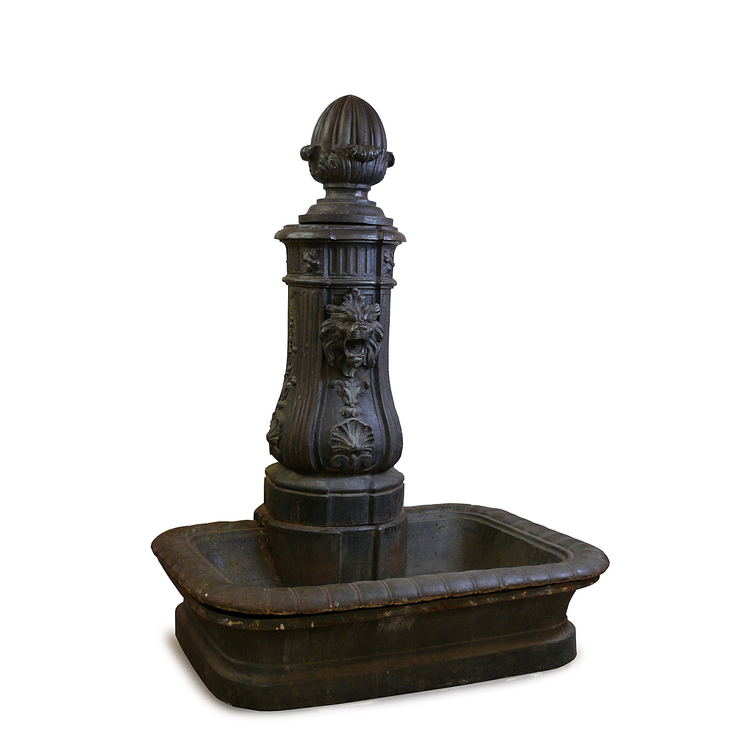LARGE CAST IRON FRENCH HOUDAIN FOUNTAIN CENTRAL COLUMN WITH OBLONG TROUGH BASE 160 CM HIGH 113 CM WIDE 100 CM DEEP