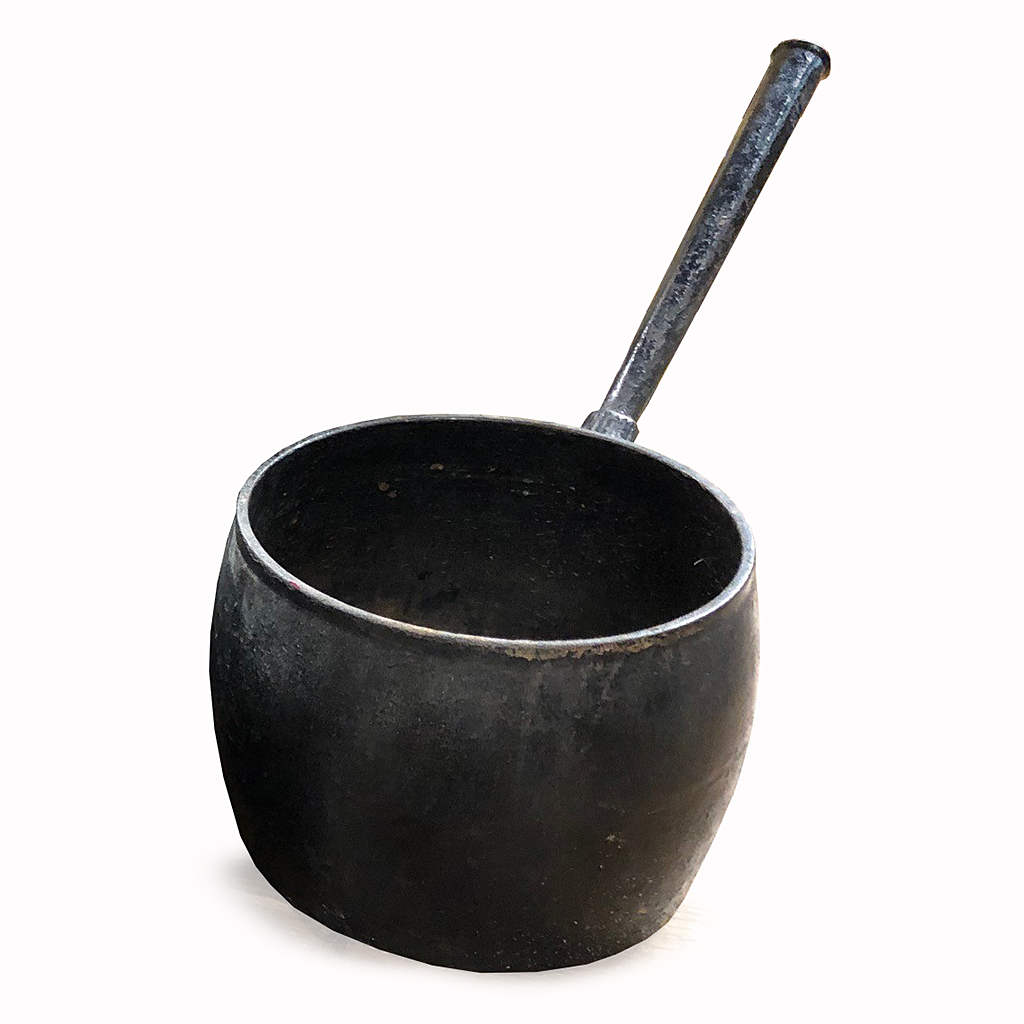 LARGE CAST IRON SAUCEPAN WITH POT BELLY SIDES