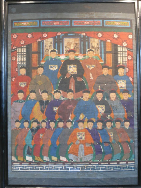LARGE CHINESE ANCESTRAL PORTRAIT OIL ON CANVAS IN AN EBONY FRAME 18TH CENT. 211 CM X 149 CM