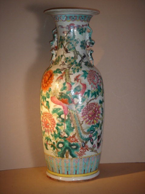LARGE CHINESE ANTIQUE FAMILLE ROSE VASE 24/i HIGH (X7)
