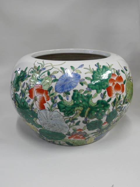 LARGE CHINESE BOWL SHAPE VASE 25 CM HIGH 39 CM WIDE (X2)