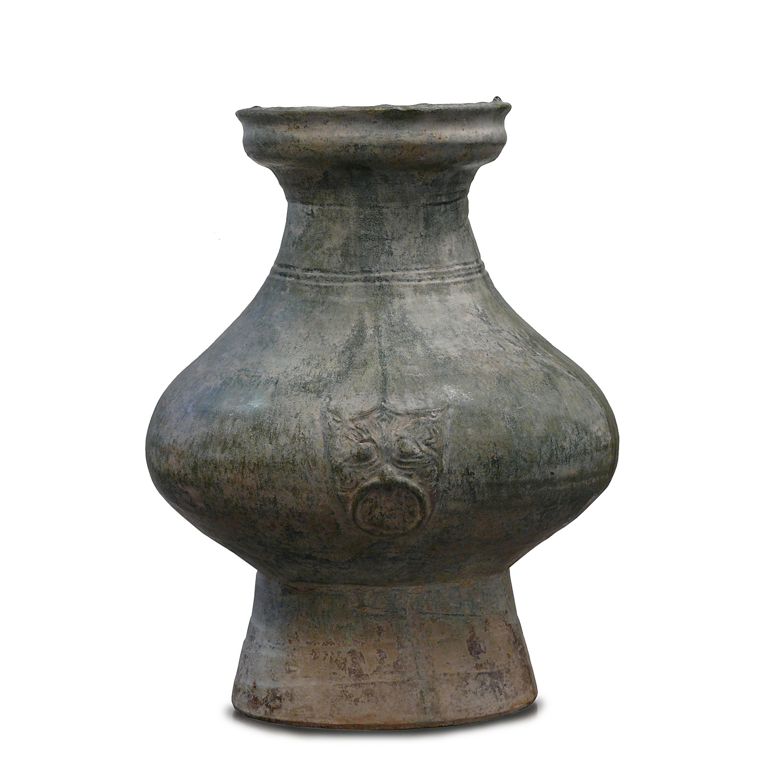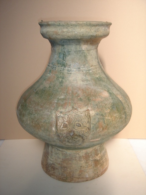 LARGE CHINESE HAN DYNASTY (HU) GREEN GLAZED CERAMIC VASE 17/i HIGH CIRCA 206 BC-220 AD