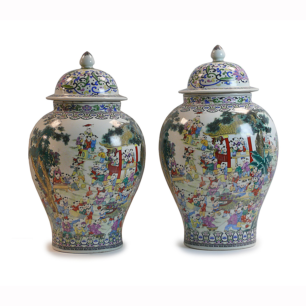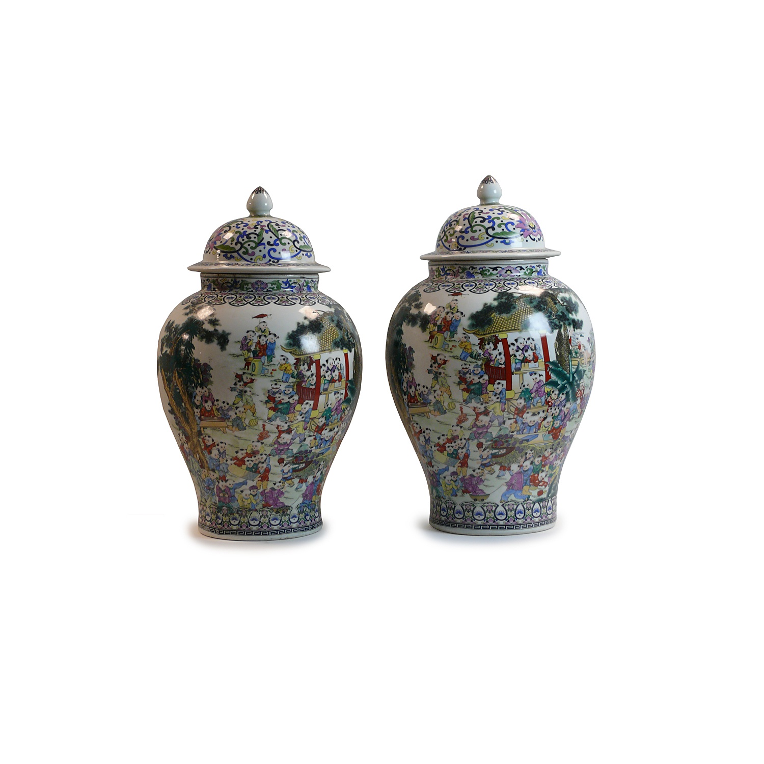 LARGE CHINESE VASE AND LID FAMILLE ROSE WITH FIGURES IN A GARDEN SCENE 61 CM HIGH (X2)