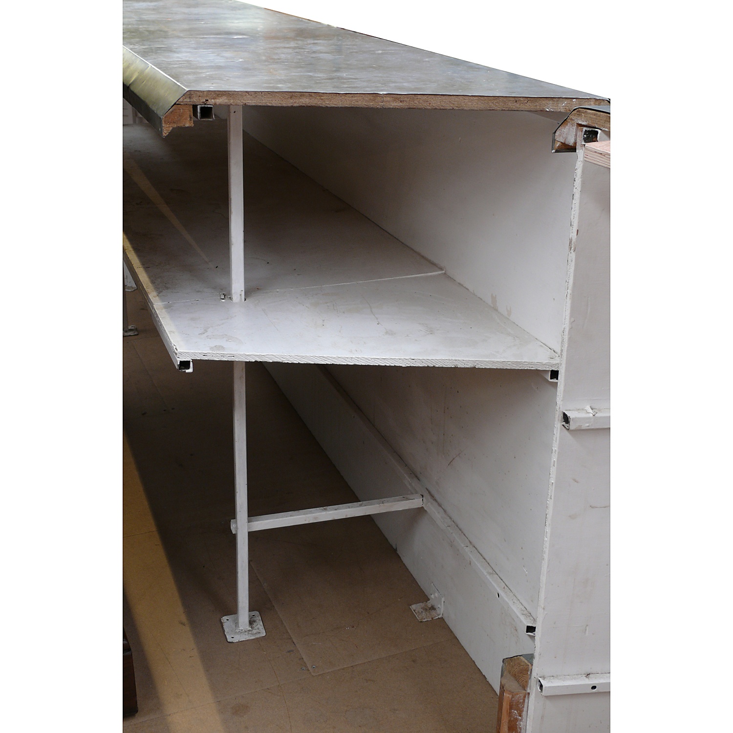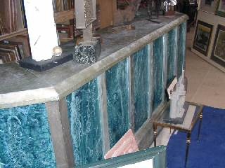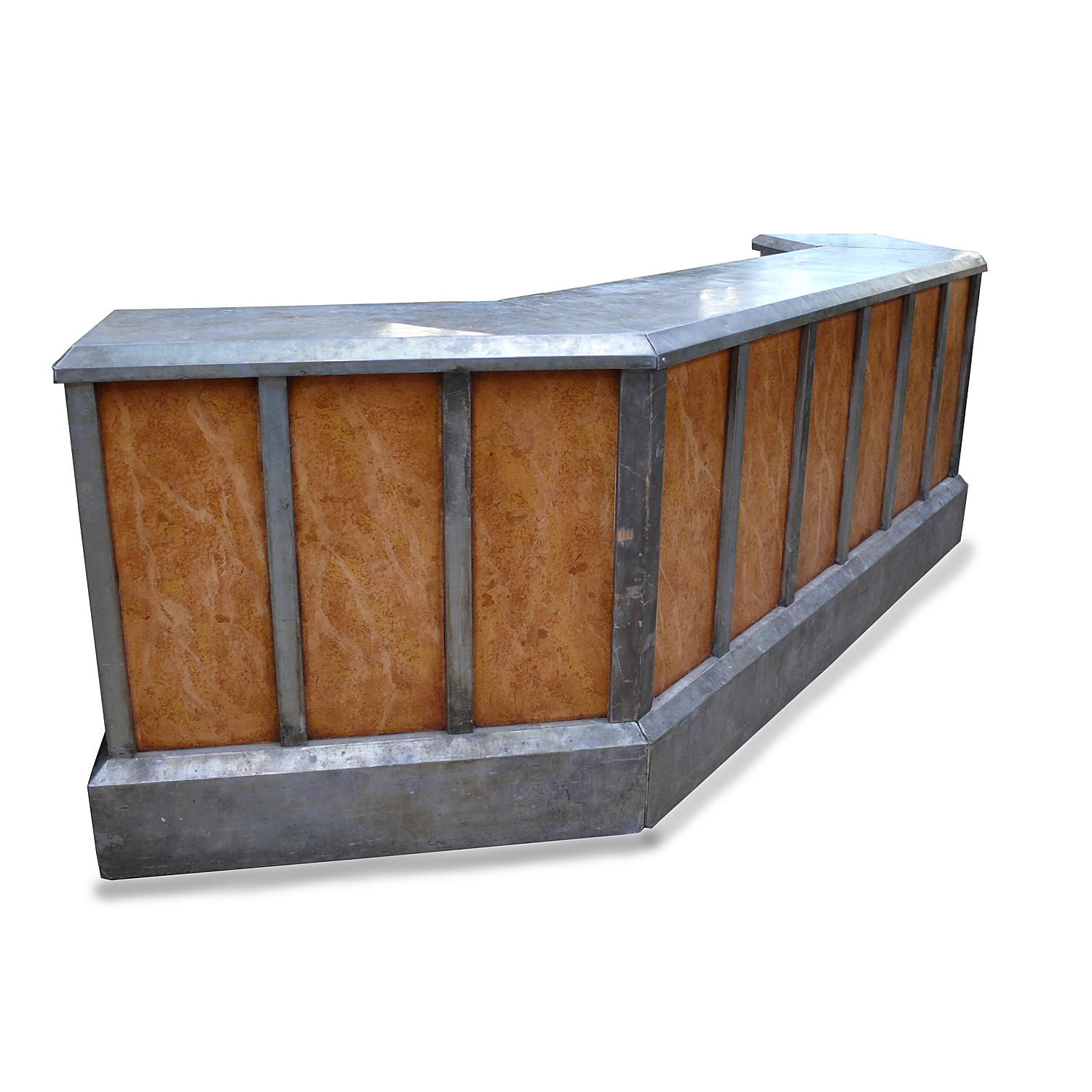 LARGE COCKTAIL BAR BURR MAPLE PANELS WITH A ZINC TOP AND TRIM (IN THREE SECTIONS) 3'7/i HIGH 12'7/i LONG (OVERALL) 380CM LONG X 109CM HIGH X 50CM DEEP