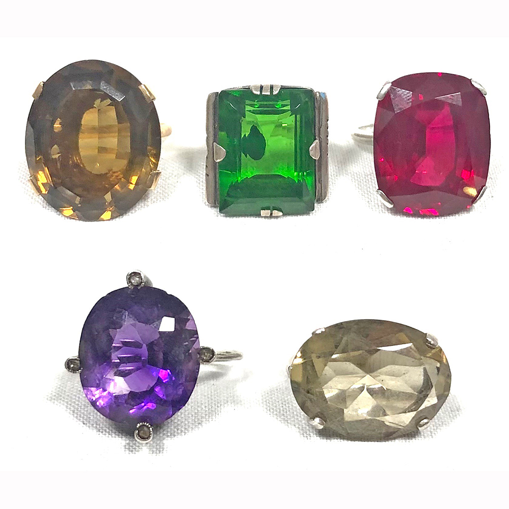 LARGE COLOURED GLASS STONE ON SILVER / GOLD LADIES RING
