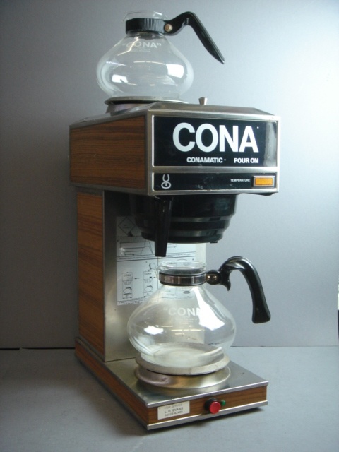 LARGE CONA COFFEE MACHINE FAUX WOOD FINISH WITH TWO PYREX COFFEE JUGS 51 CM HIGH