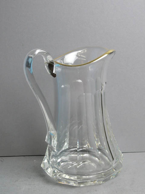 LARGE CUT GLASS JUG WITH GOLD RIM 24 CM