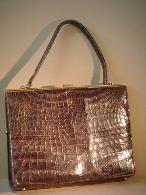 LARGE DARK TAN CROCODILE SKIN HANDBAG 27 CM WIDE