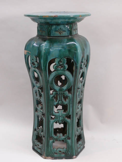 LARGE EARLY CHINESE TORQUOISE CERAMIC GARDEN STOOL HEXAGONAL (X2)