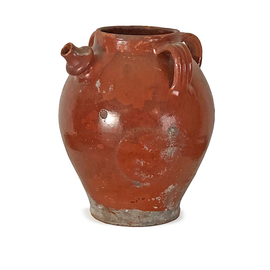 LARGE EARLY FRENCH FLAGON GLAZED BROWN EARTHENWARE 19TH CENT 36 CM HIGH