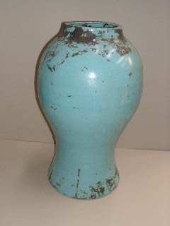 LARGE EARLY MOROCCAN TURQUOISE CERAMIC VASE 20/i HIGH X 12/i DIAMETER 51 CM X 30 CM (X2)