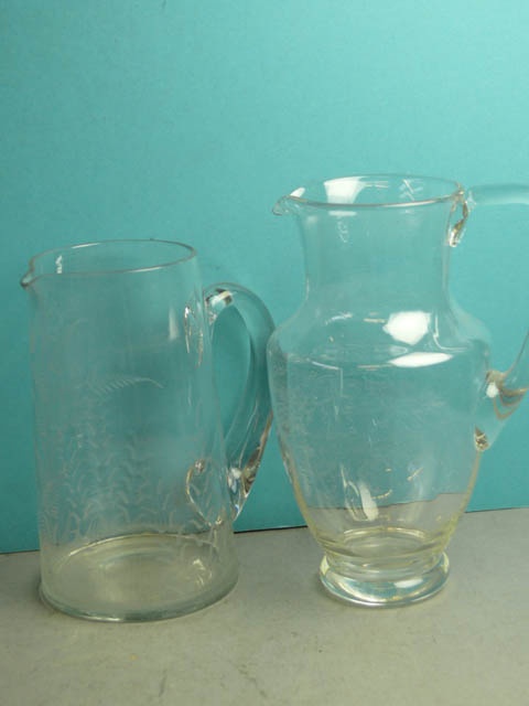 LARGE ETCHED GLASS JUG AS SELECTED 21 CM - 24 CM