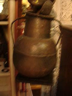 LARGE ETHNIC COPPER EWER / POT WITH TWO LOOP HANDLES