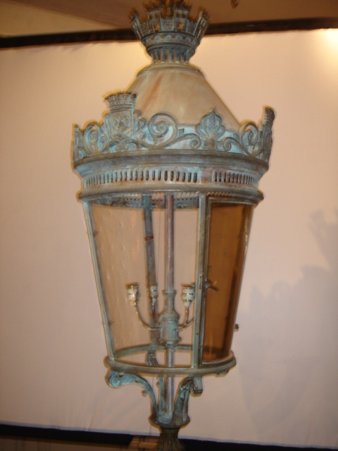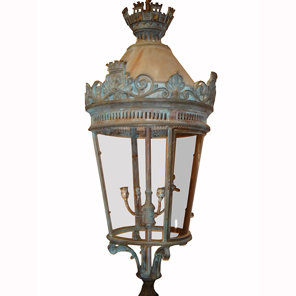 LARGE FRENCH BRONZE CIRCULAR LANTERN CHAMPS ELYSEE TYPE WITH CURVED GLASS PANELS 146 CM HIGH