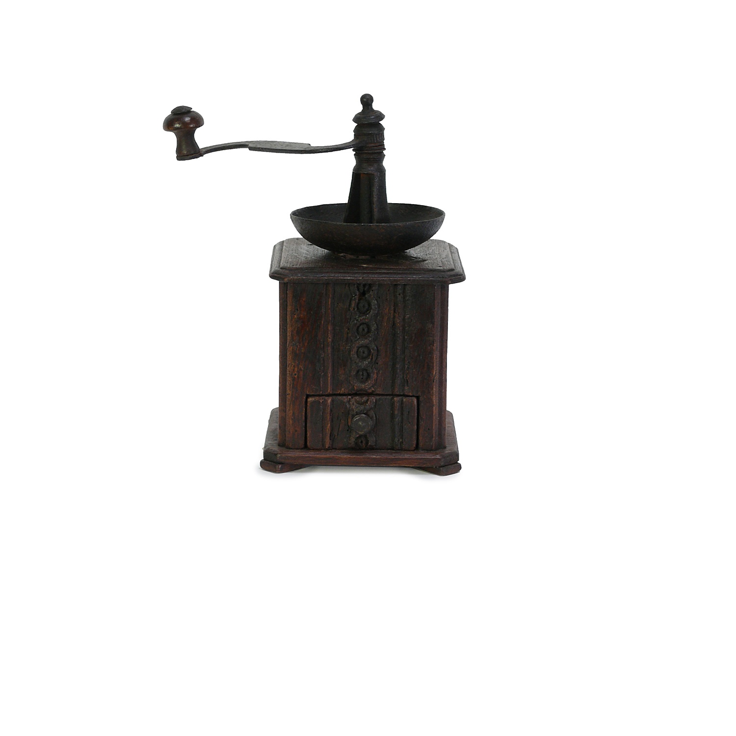LARGE FRENCH COFFEE GRINDER CARVED OAK AND METAL 30 CM HIGH 18 CM WIDE