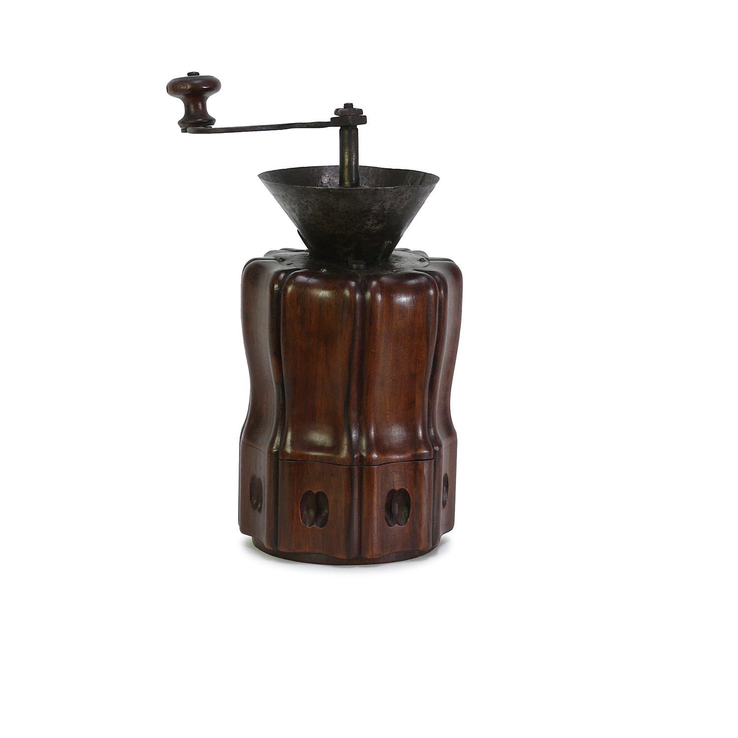 LARGE FRENCH COFFEE GRINDER FRUITWOOD AND METAL 36 CM HIGH 17 CM WIDE
