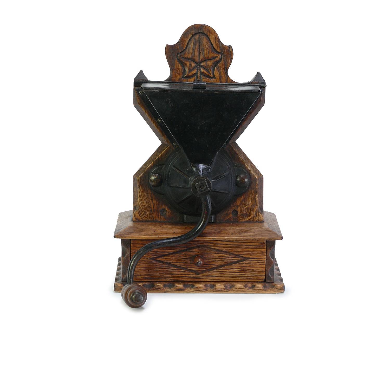 LARGE FRENCH COFFEE GRINDER LIGHT OAKAND BLACK METAL 39 CM HIGH 25 CM WIDE