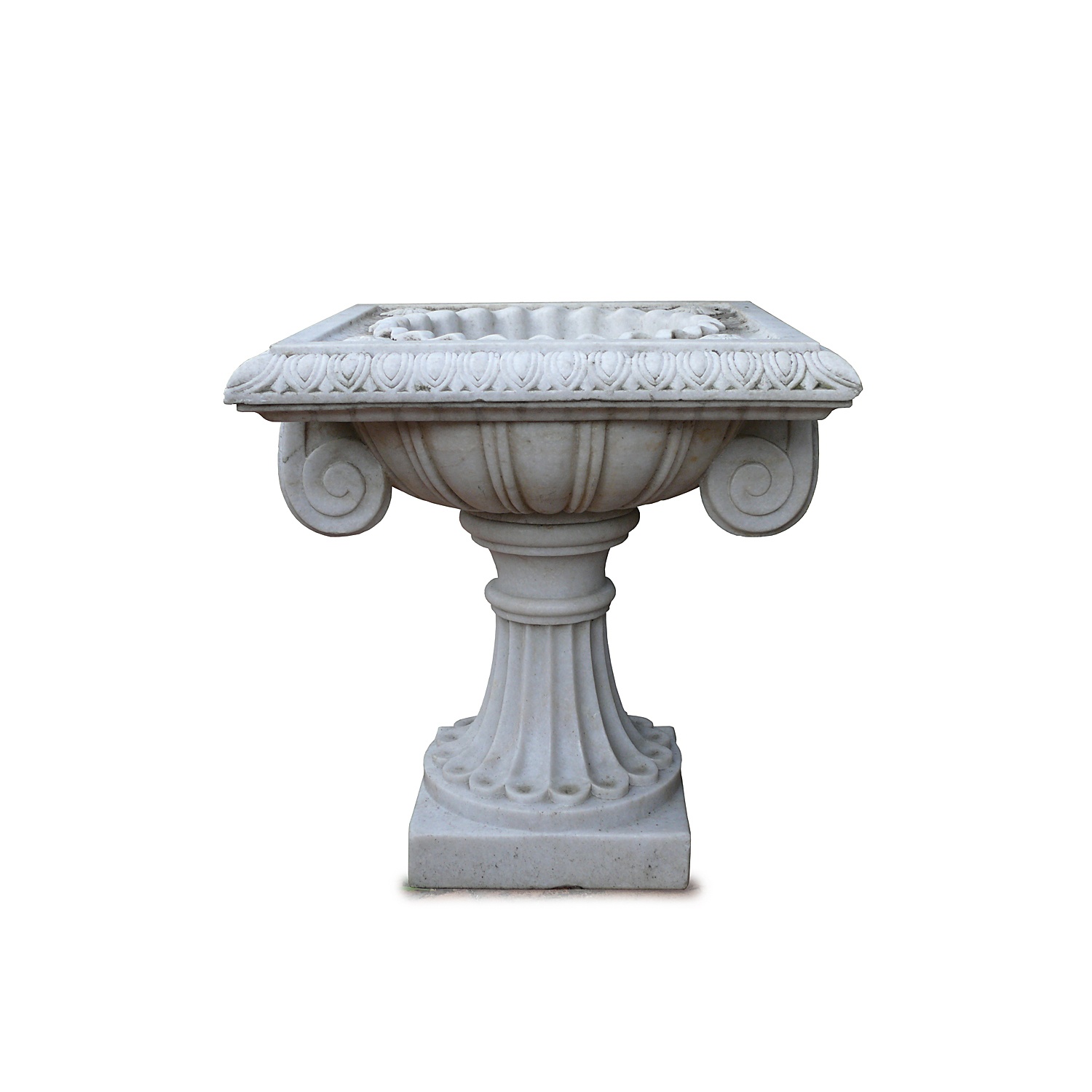 LARGE GARDEN TAZZA / URN ITALIANATE CARVED CARRARA MARBLE WHITE SQUARE TWO PART 97 CM HIGH 60 CM WIDE 60 CM DEEP (X2)