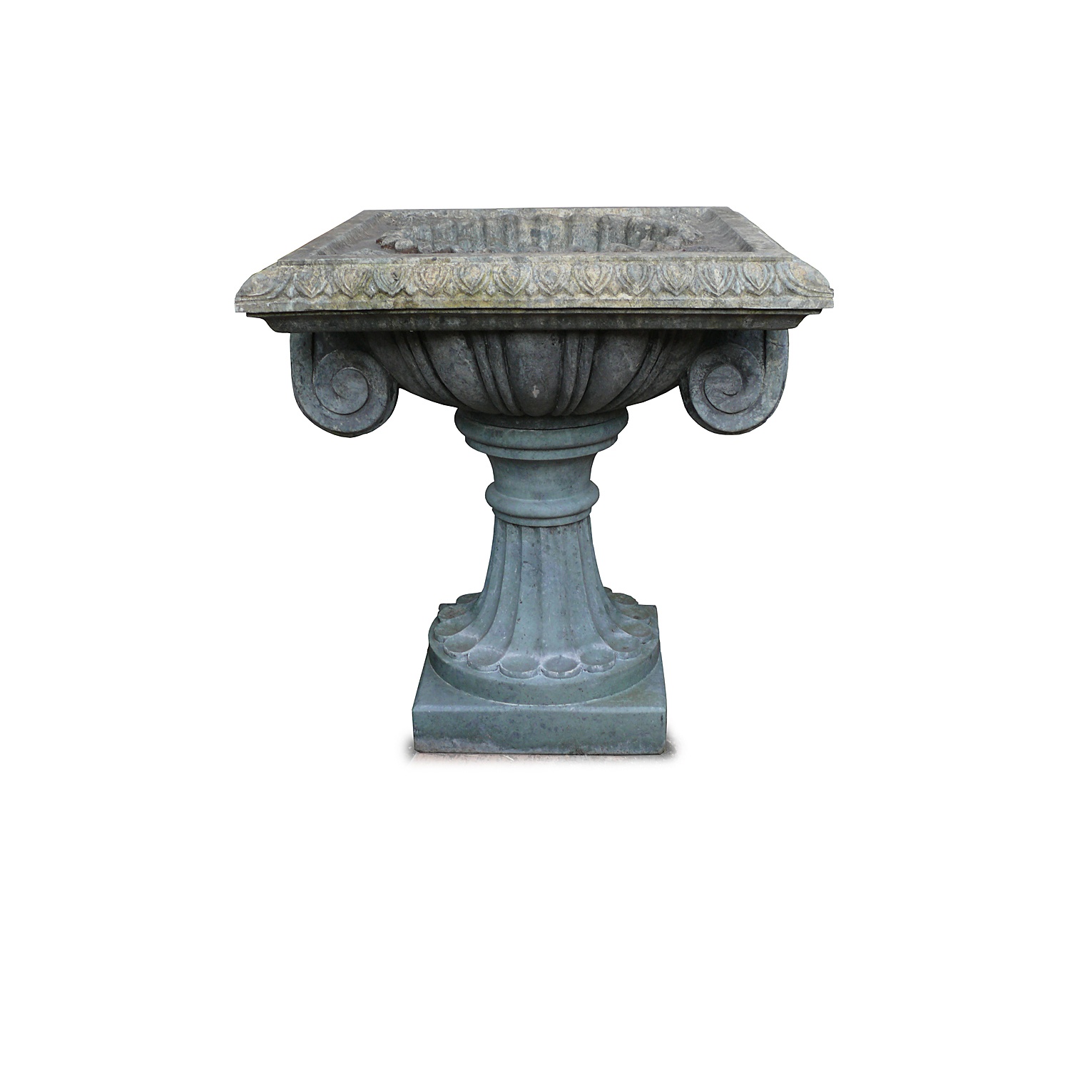 LARGE GARDEN TAZZA / URN ITALIANATE CARVED VERDE ANTICO GREEN MARBLE SQUARE TWO PART 3'2/i H 97 CM