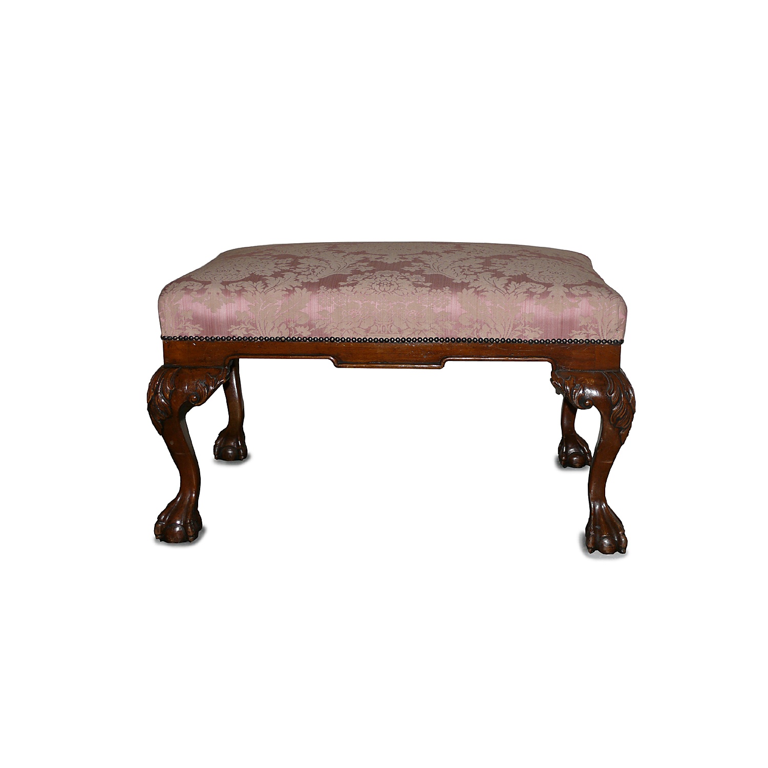 LARGE GEORGIAN STYLE STOOL CABRIOLE LEGS PINK DAMASK UPHOLSTERY 94 CM X 64 CM