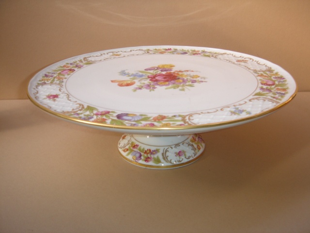 LARGE GERMAN FLORAL CHINA CAKE STAND