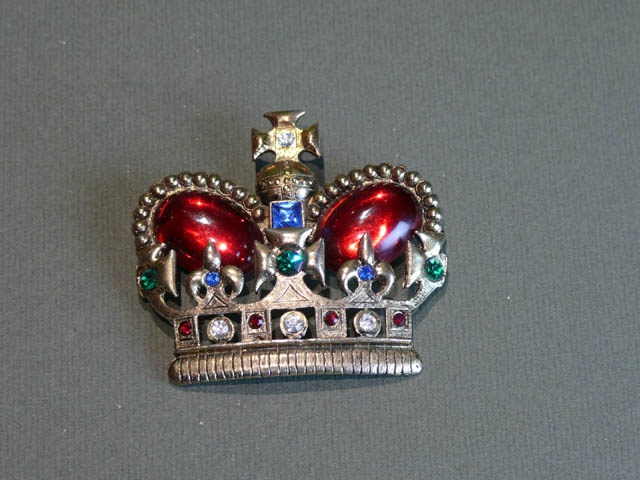 LARGE GILT AND GLASS BROOCH OF CROWN