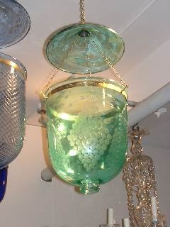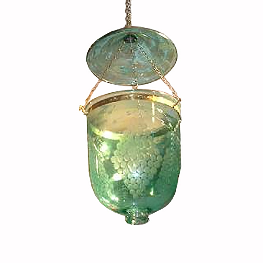 LARGE GREEN GLASS BELL LANTERN WITH BRASS FITTINGS (X3)