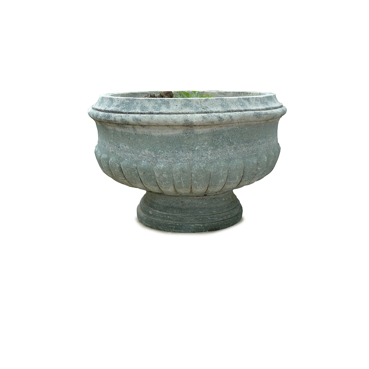 LARGE GREY MARBLE OVAL GARDEN URN ITALIAN 19TH CENT (X2)