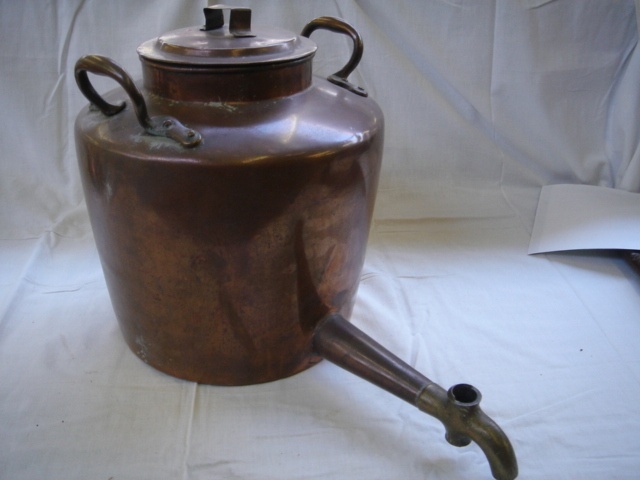 LARGE HANGING COPPER KETTLE WITH TAP SPOUT