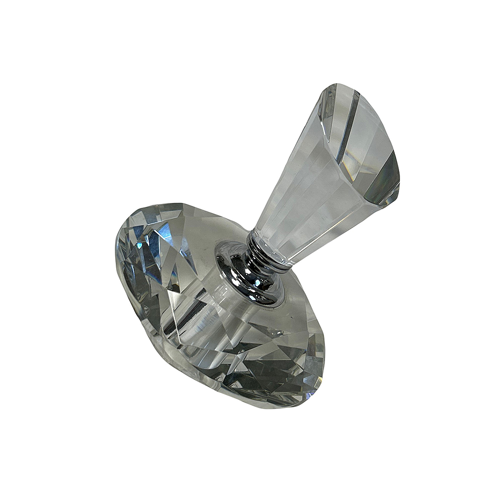 LARGE HEAVY CRYSTAL SCENT BOTTLE IN A SHAPE OF DIAMOND WITH A SCREW ANGULAR LID 12 CM DIAM. / 16 CM HIGH