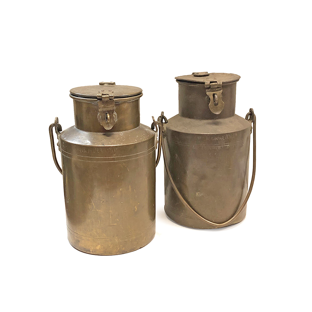 LARGE INDIAN STEEL MILK CHURN 29 CM (X2)