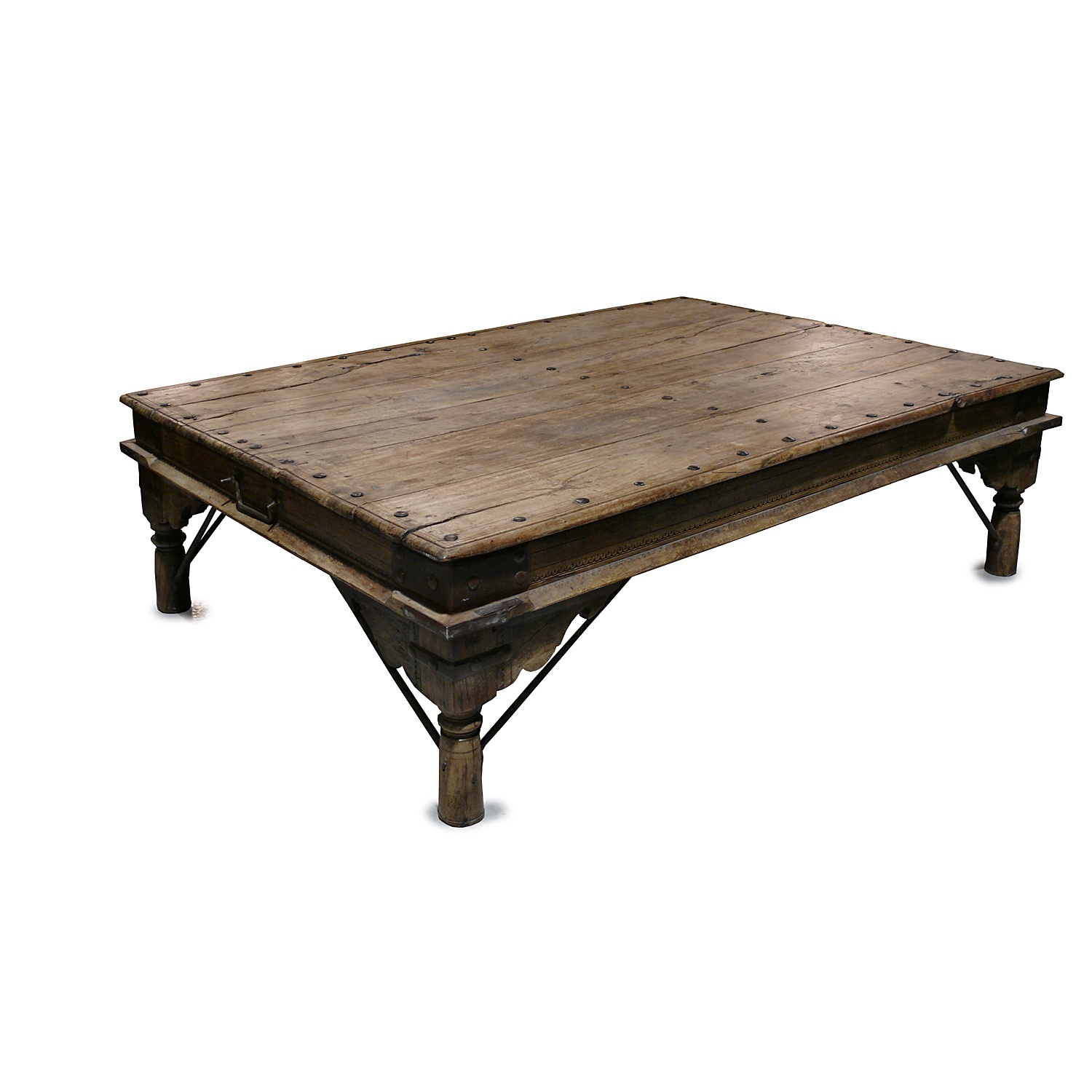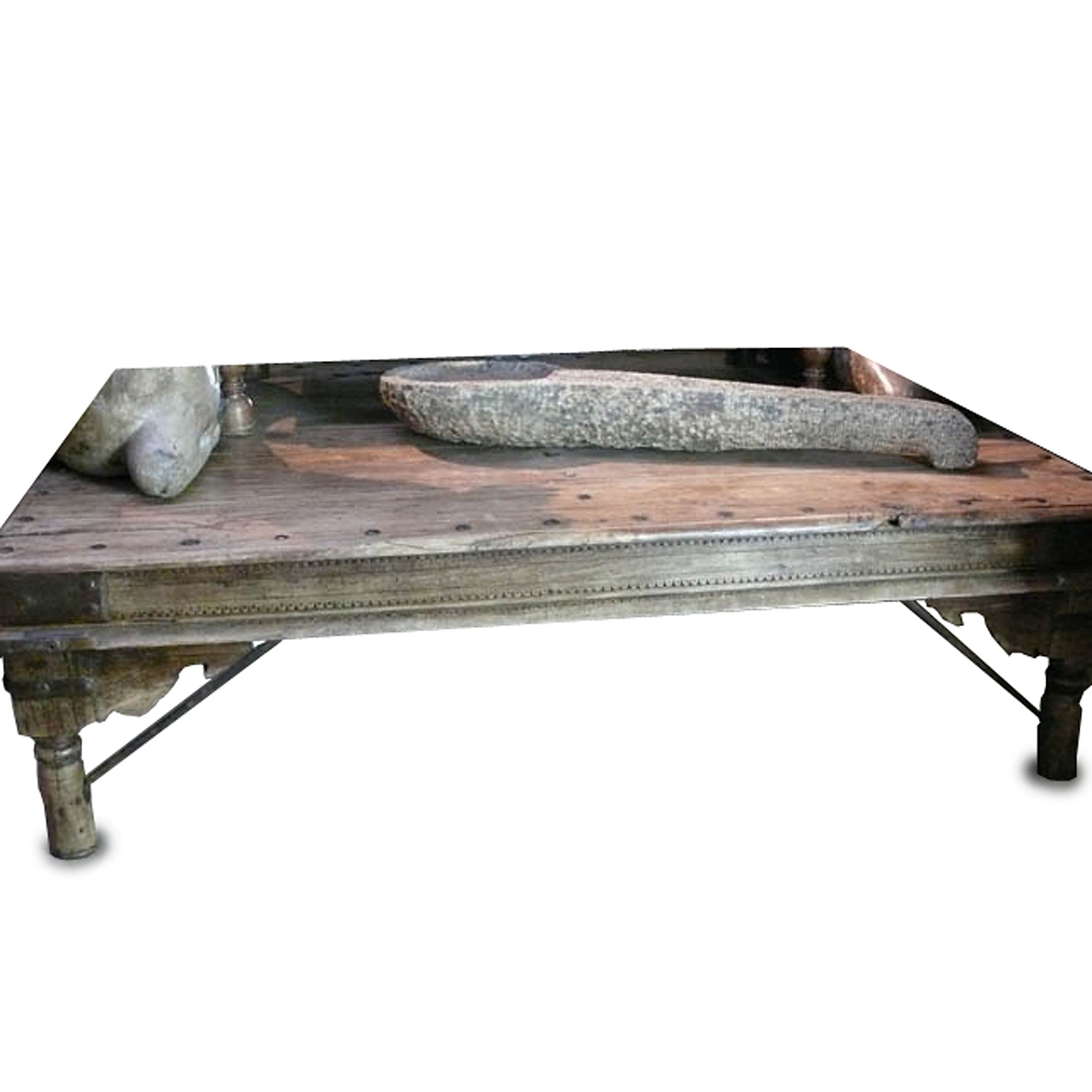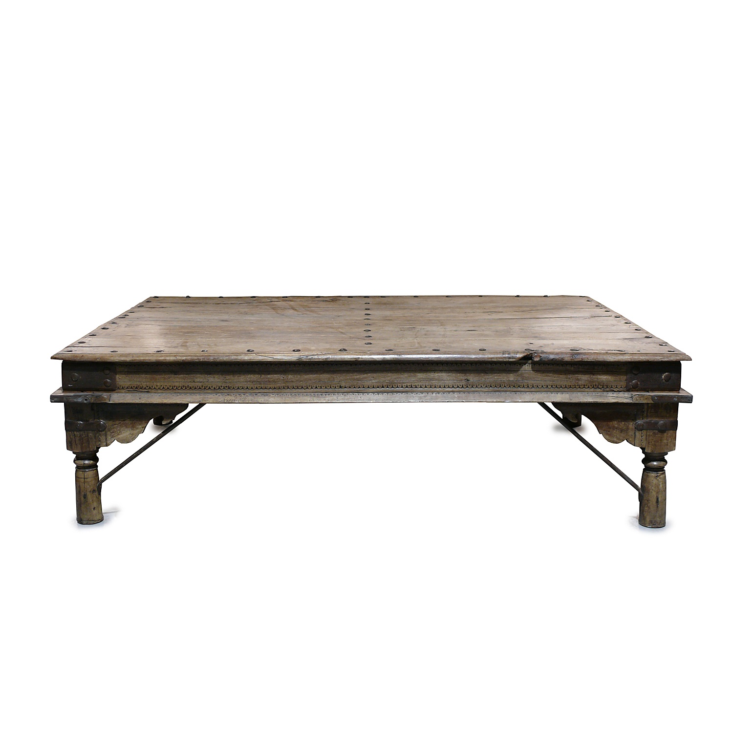LARGE INDIAN TEAK COFFEE TABLE / BED WITH METAL STUD WORK 51 CM HIGH 181 CM LONG 127 CM WIDE