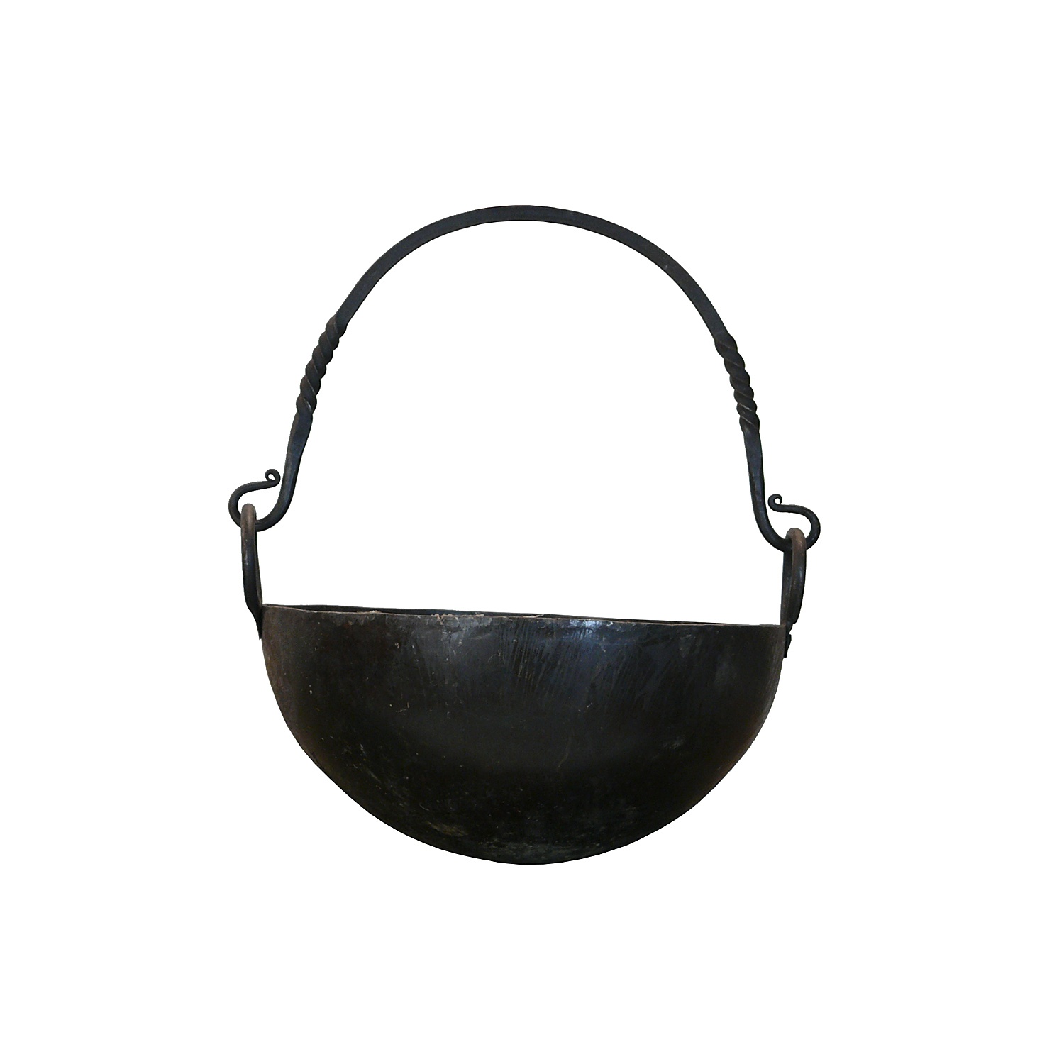 LARGE IRON HANGING SKILLET TYPE PAN 33 CM DIAM
