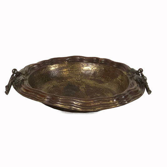 LARGE ITALIANATE WASH BOWL / BASIN / BRAZIER PLANNISHED COPPER WITH RIPPLE PATTERN RIM AND TWO HANDLES 16TH CENT STYLE 54 CM DIAM