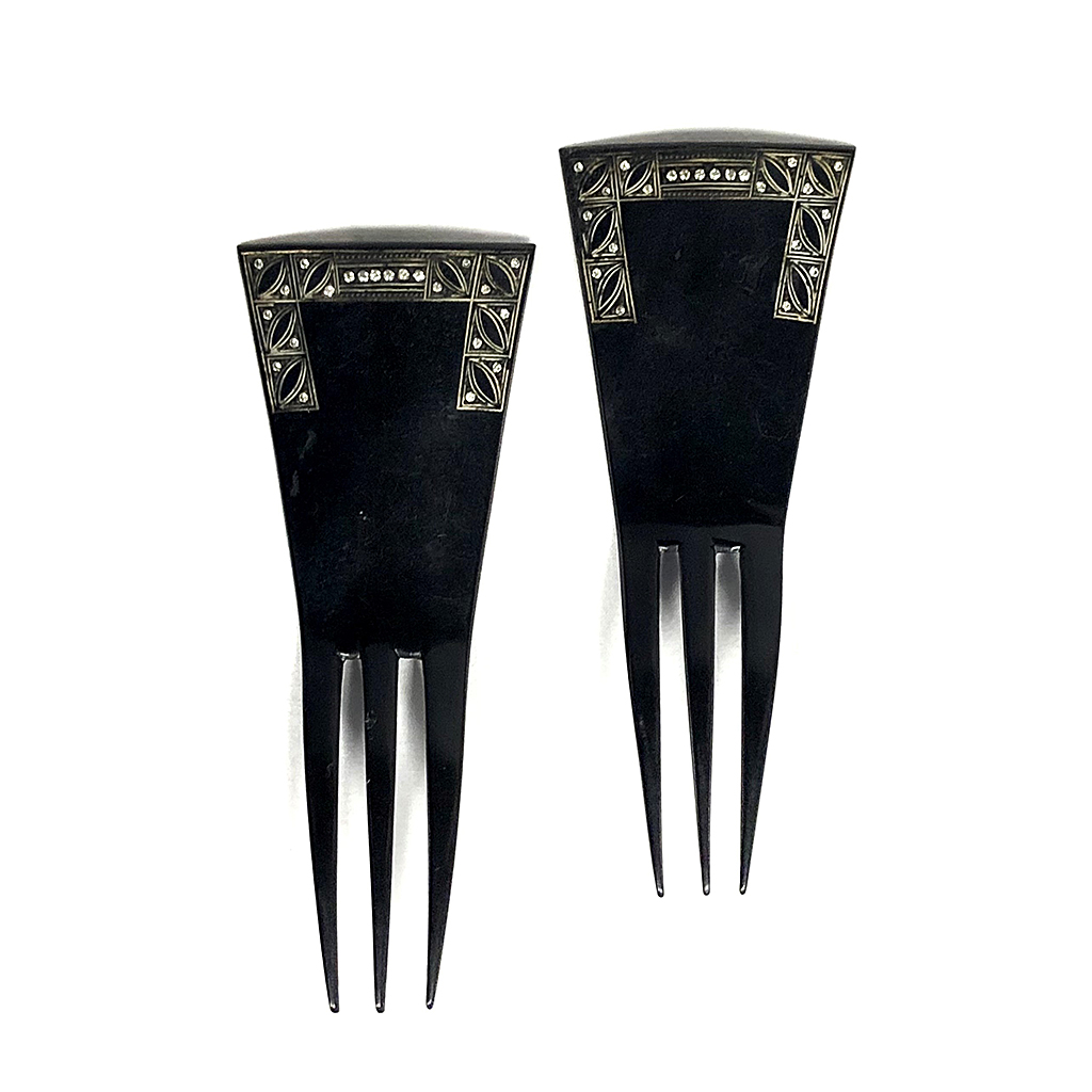 PAIR OF ART DECO FAUX TORTOISESHELL HAIR SLIDE / PRONG WITH PASTE DECORATION