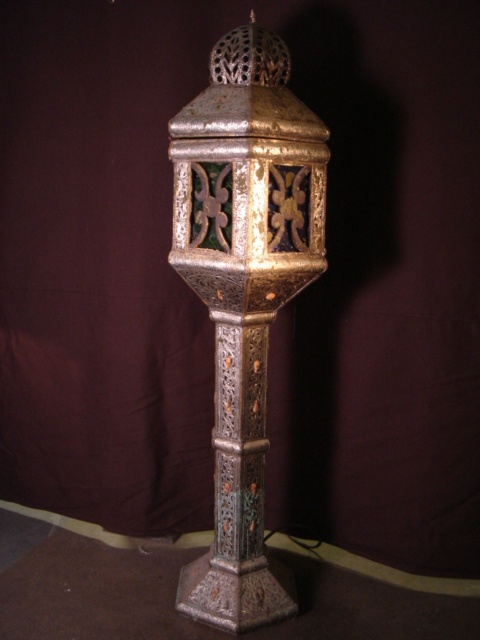 LARGE LANTERN MOROCCAN ORNATE SILVER SIX SIDED FLOOR STANDING (X2)
