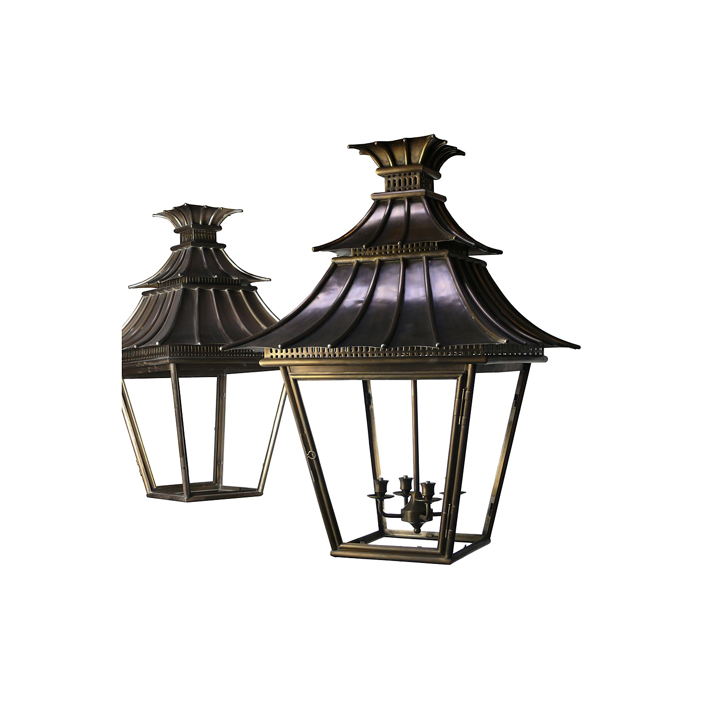 LARGE METAL LANTERN IN CHINESE PAGODA STYLE 88 CM HIGH 58 CM WIDE (X2)